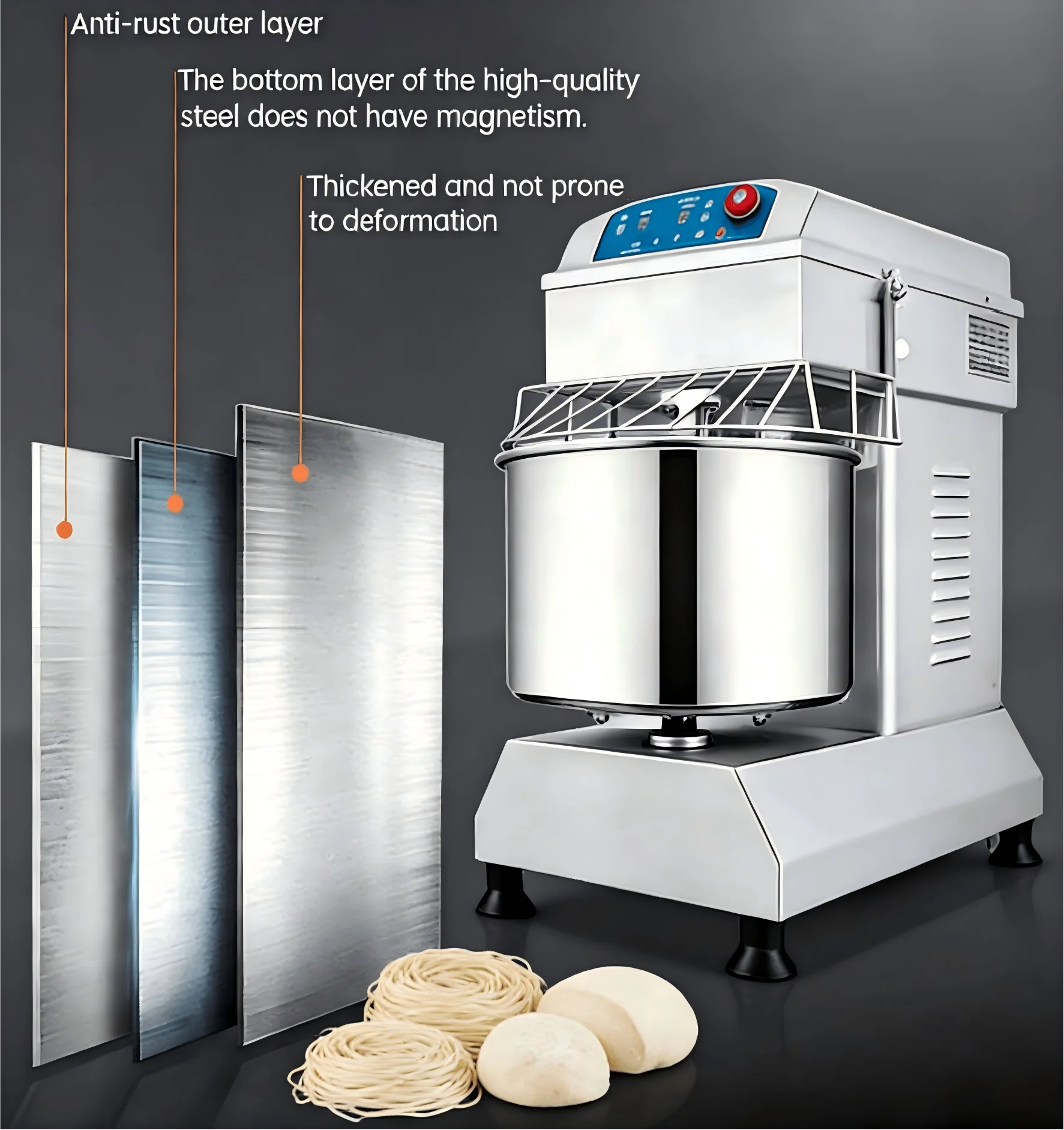 of products, such as dough mixers, noodle sheeting machines, Mento processing machines, rice steaming cabinets, Mantou steaming