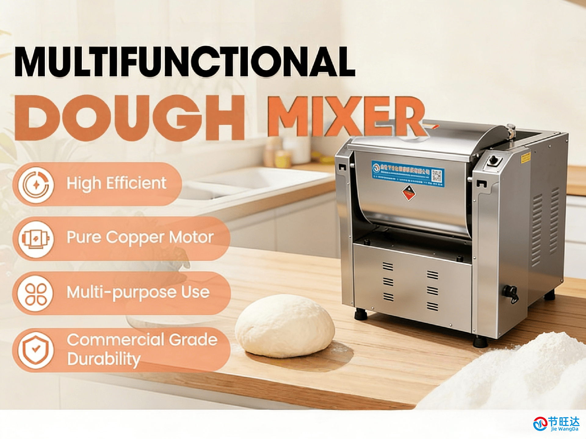 of products, such as dough mixers, noodle sheeting machines, Mento processing machines, rice steaming cabinets, Mantou steaming