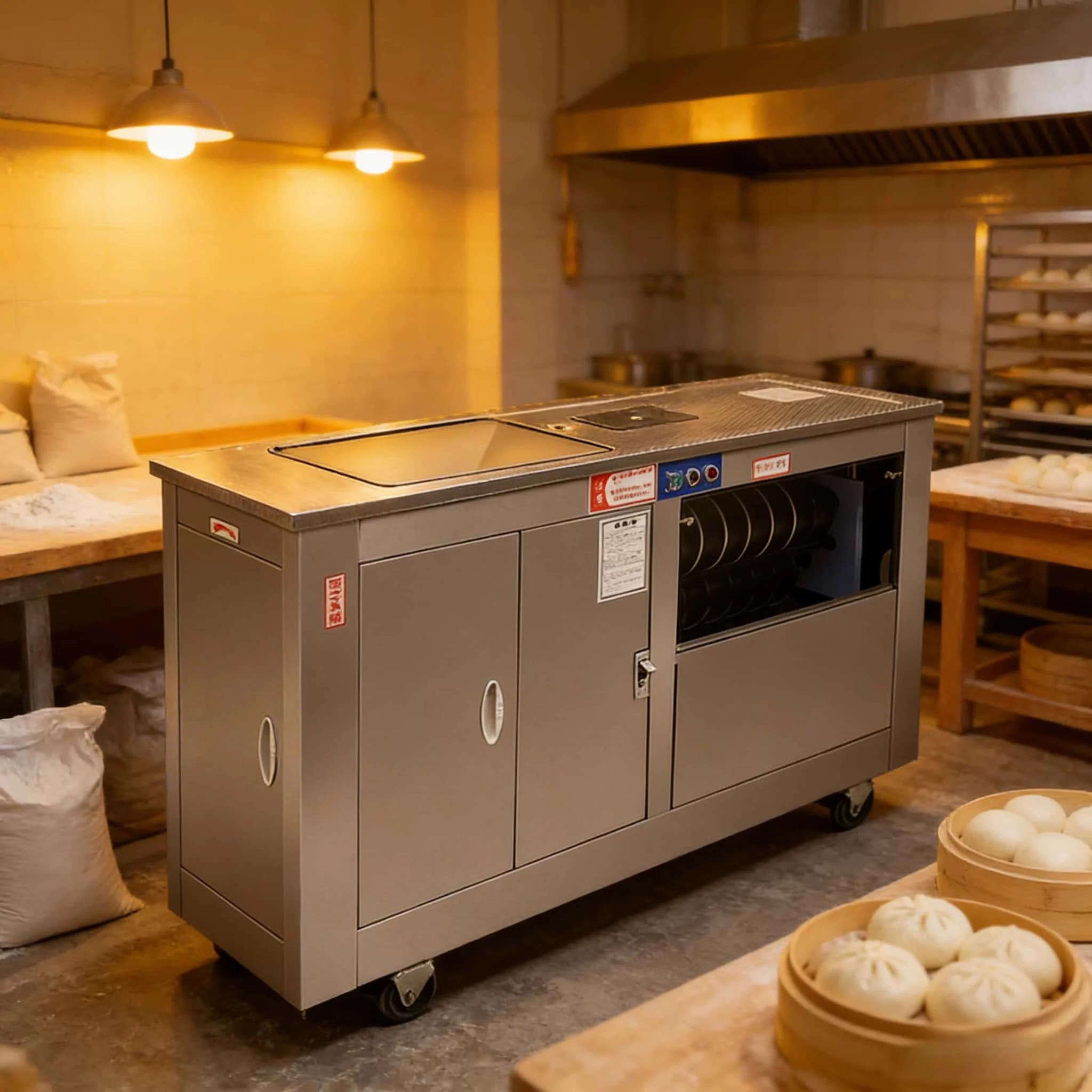 of products, such as dough mixers, noodle sheeting machines, Mento processing machines, rice steaming cabinets, Mantou steaming