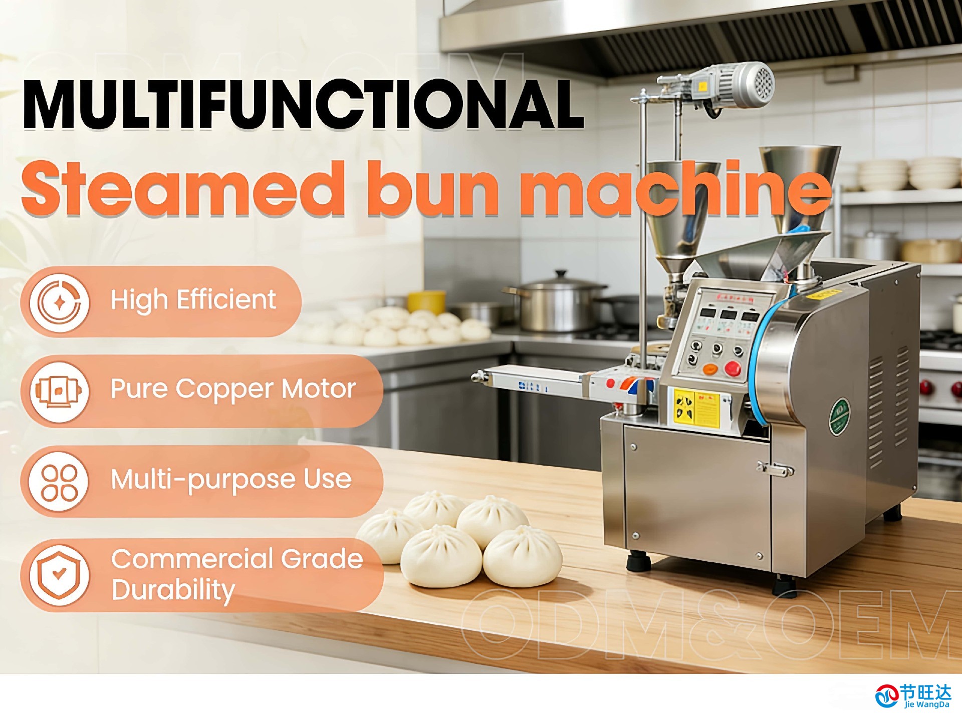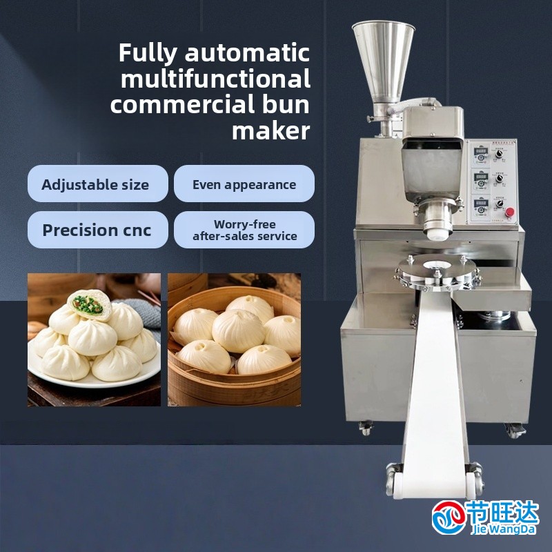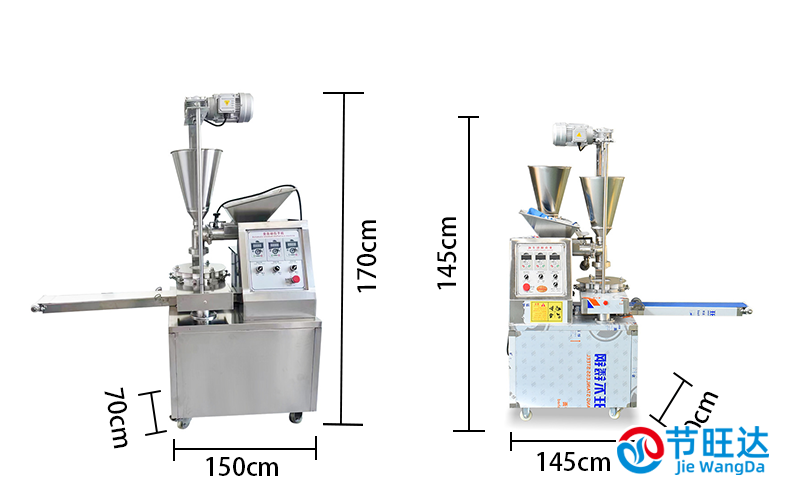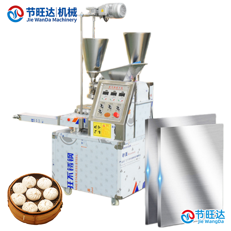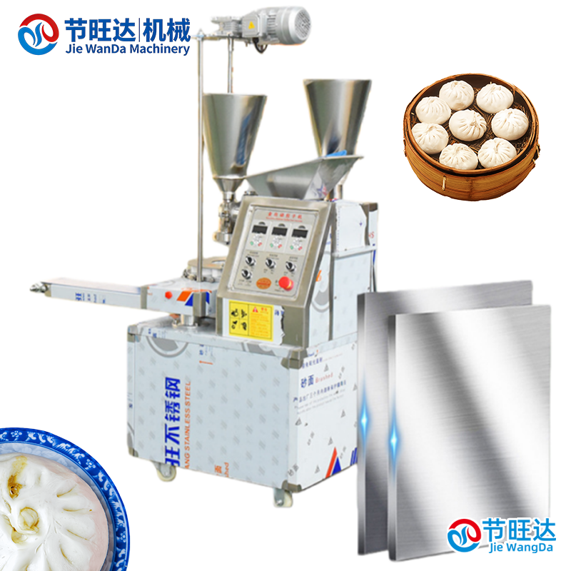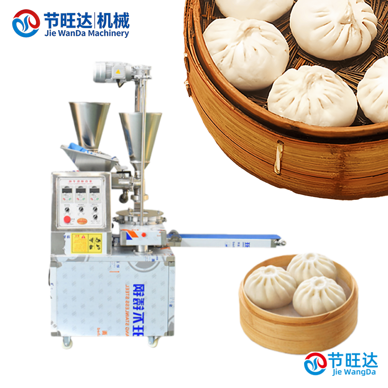 The Jie WanDa canteen steamed bun machine is made entirely of stainless steel, which extends the service life of the machine. The Jie WanDa canteen steamed bun machine has three speed adjustments, allowing simultaneous adjustment of the dough feeding speed, filling feeding speed, and production speed. You can decide how many are produced in an hour. The steamed bun machine has a small footprint and can be used for flexible production. Only 3 square meters of space is needed to place the Jie WanDa canteen steamed bun machine.