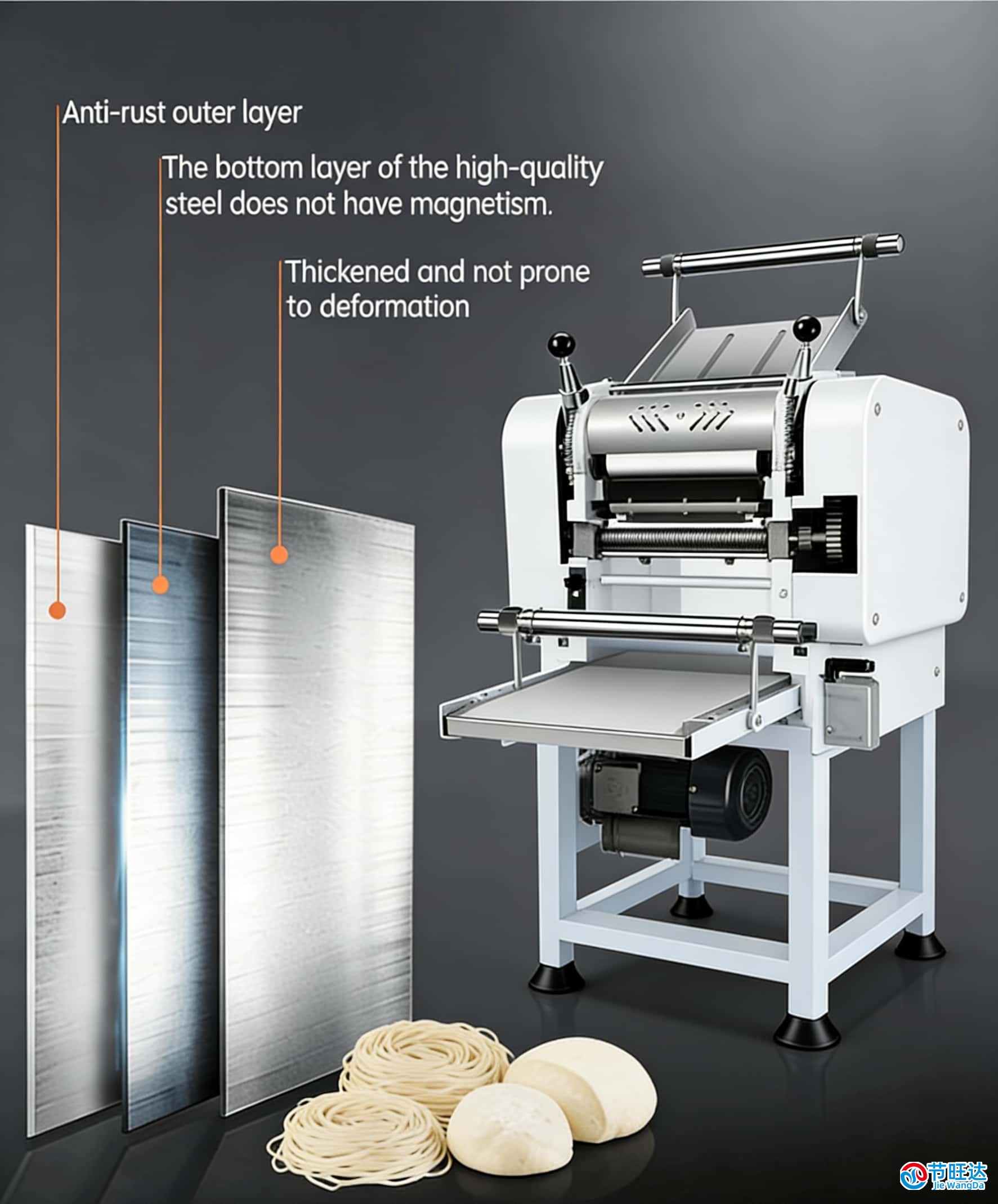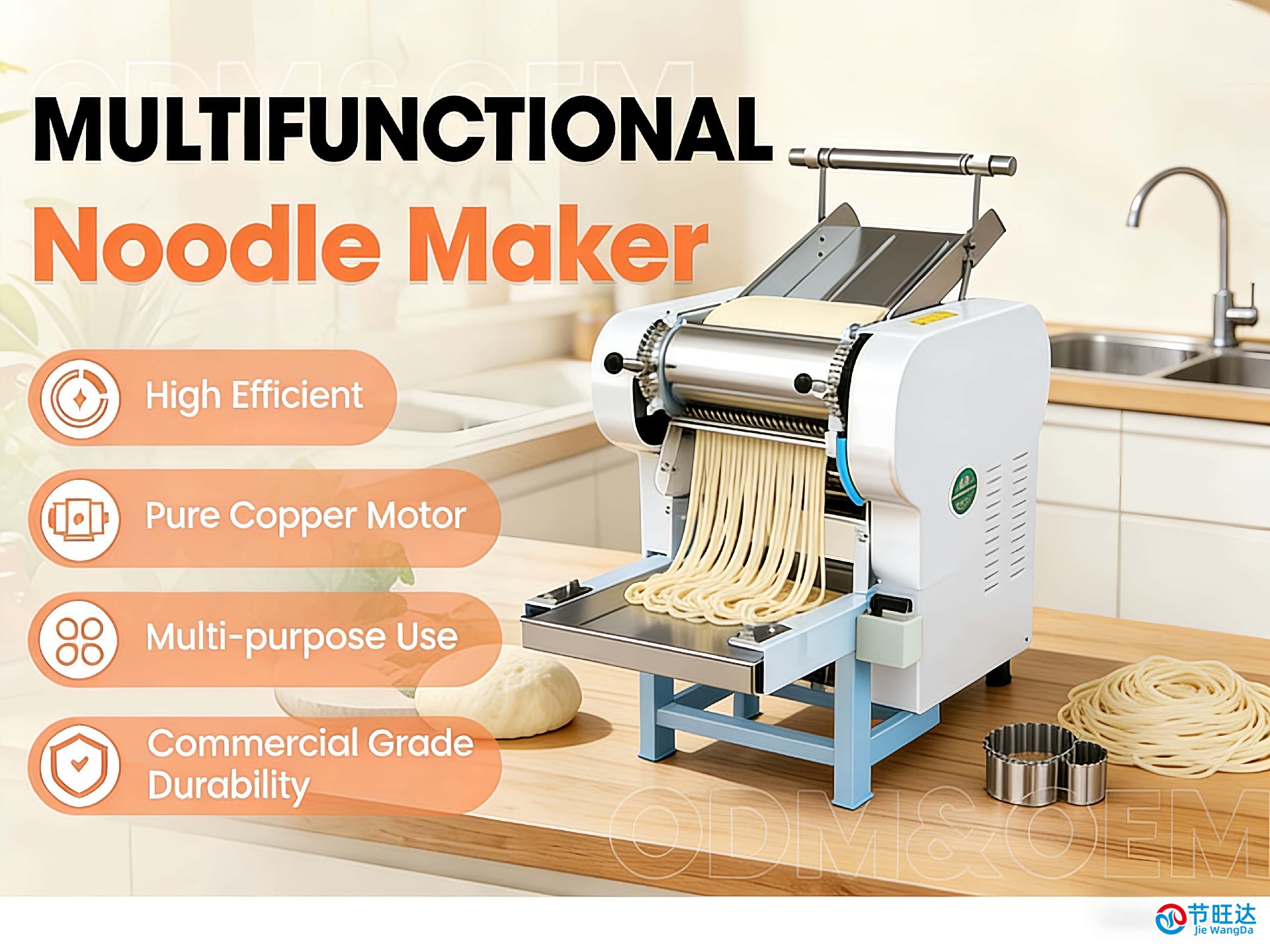 The automatic noodle machine is a convenient kitchen appliance specially designed for household and small commercial scenarios.Its core function is to automatically complete a series of processes such as mixing flour and water, kneading dough, rolling, and cutting noodles through motor drive. It eliminates the need for manual repeated kneading and rolling, significantly saving the time and labor costs for making noodles. It is easy to operate and clean, and can produce noodles of different thicknesses and widths as needed (such as thin noodles, thick noodles, wide noodles, dragon beard noodles, etc.). Some models also support making dumpling wrappers and wonton wrappers, which are suitable for various scenarios such as daily home cooking and small catering stores.